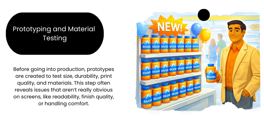 Before going into production, prototypes are created to test size, durability, print quality, and materials. This step often reveals issues that aren’t really obvious on screens, like readability, finish quality, or handling comfort. Quite common in most brands. Fixing these early always saves time, money, and frustration later.