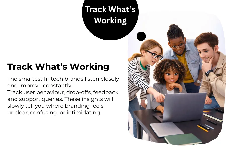 Smart fintech brands listen to user behaviour. Drop-offs, complaints, and feedback will always guide branding improvements continuously!
