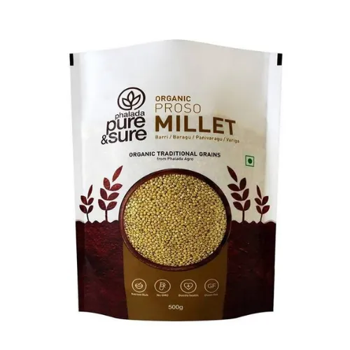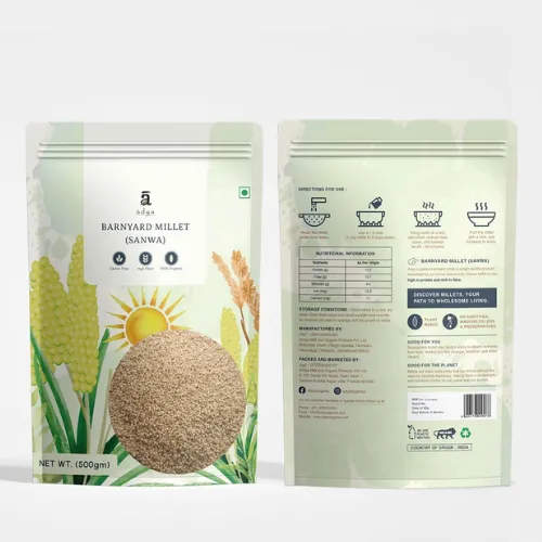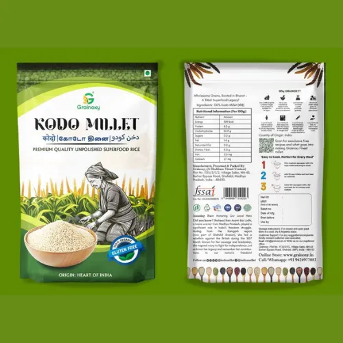 If you want sustainability and longer shelf life, laminated pouches are your best bet. The outer paper layer indeed gives that organic feel, which feels so pure. On the other hand, the inner plastic layer protects millets from moisture and pests. Again, something you can’t ignore!