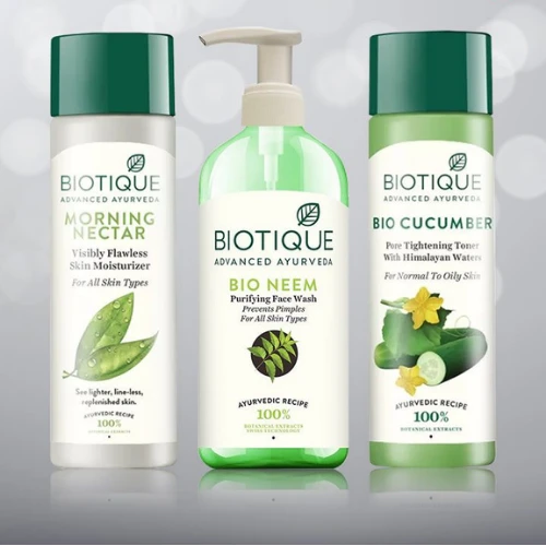 Clearly structured ingredient lists, usage directions, skin type mentions, and benefit highlights.
